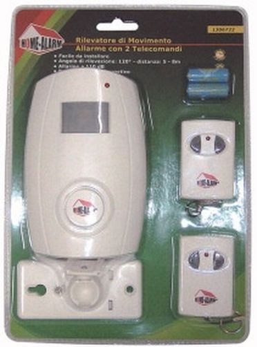 Detect a 120° angle up to 7mt of distance. Built in siren 110dB. Activable with remote control. Work with 4 AA batteries (not included).
